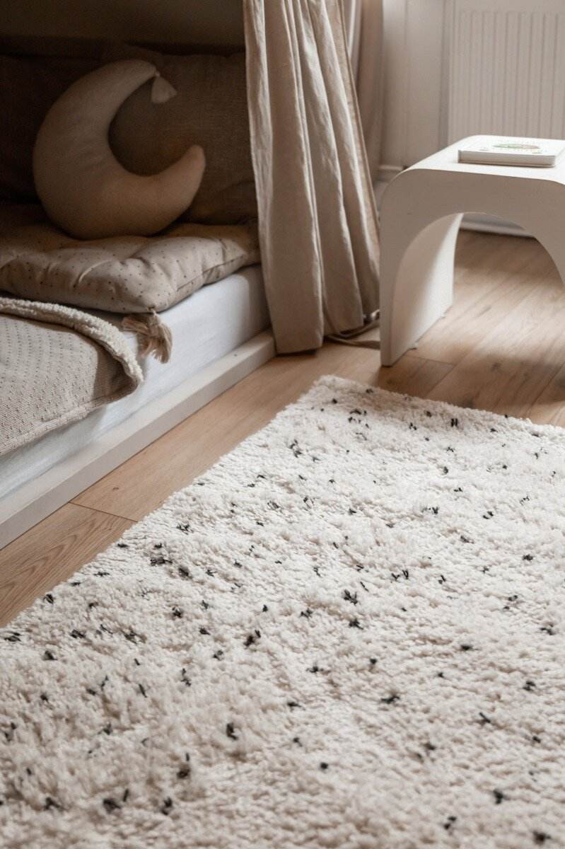 Berber Vloerkleed Hoogpolig Wit/Zwart - Dip