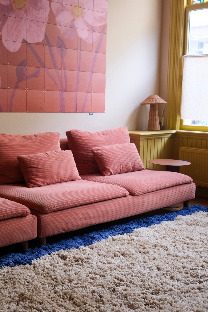 Hoogpolig vloerkleed Pilo beige/blauw polyester Interieur05