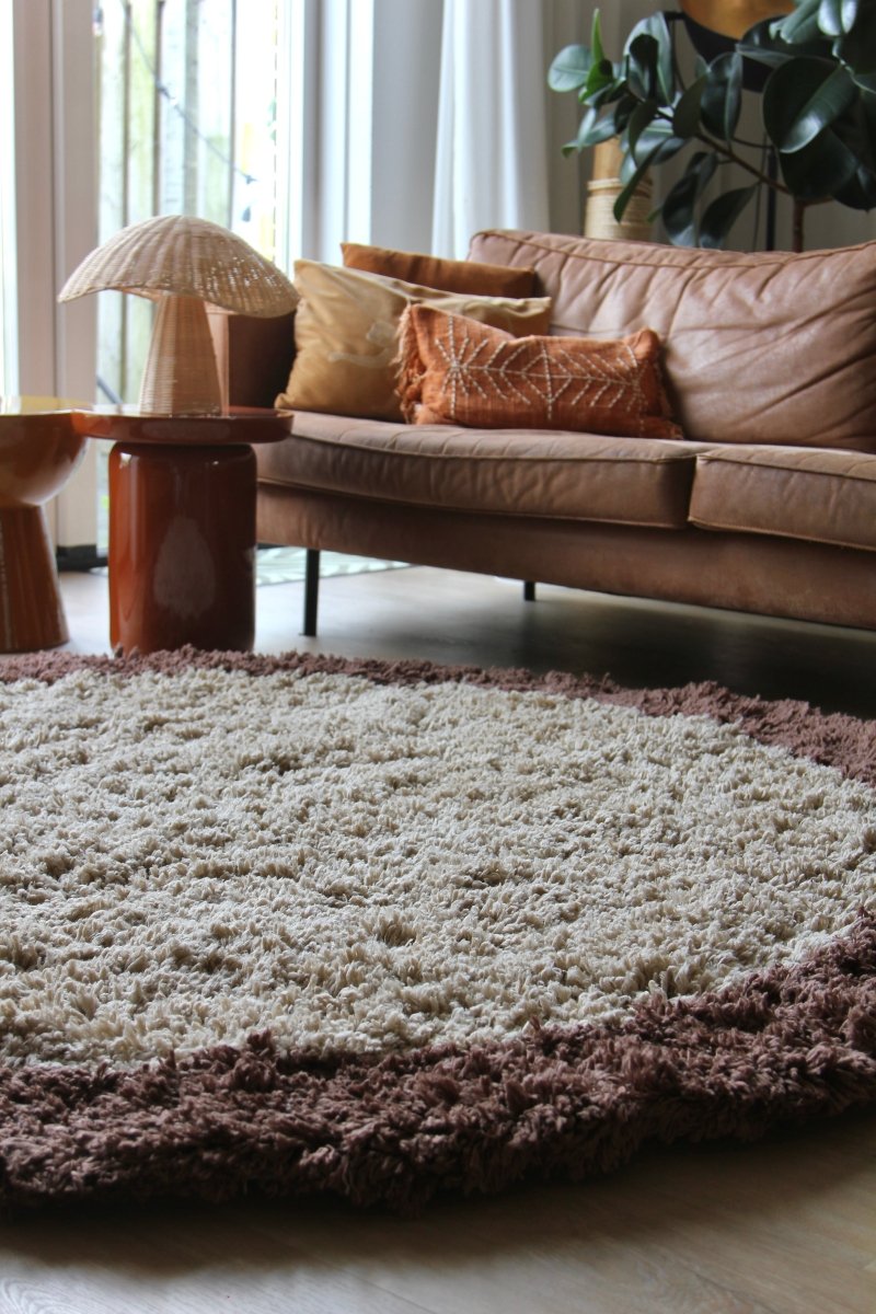 Rond hoogpolig vloerkleed Pilo beige/bruin polyester Interieur05