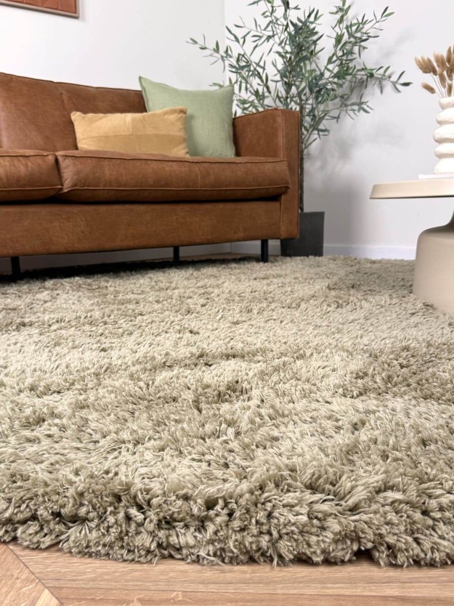 Rond hoogpolig vloerkleed Pilo groen polyester Interieur05