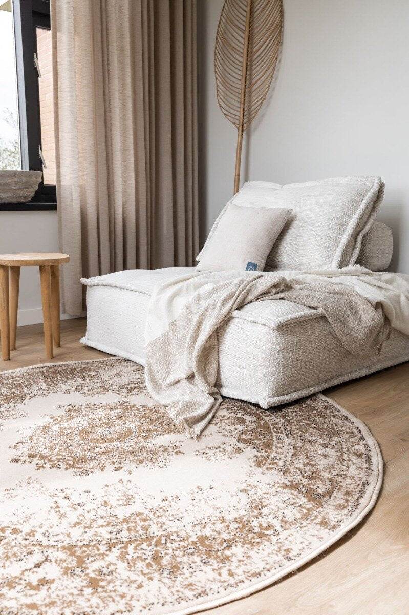 Rond Vintage Vloerkleed Keshan Bruin/Beige