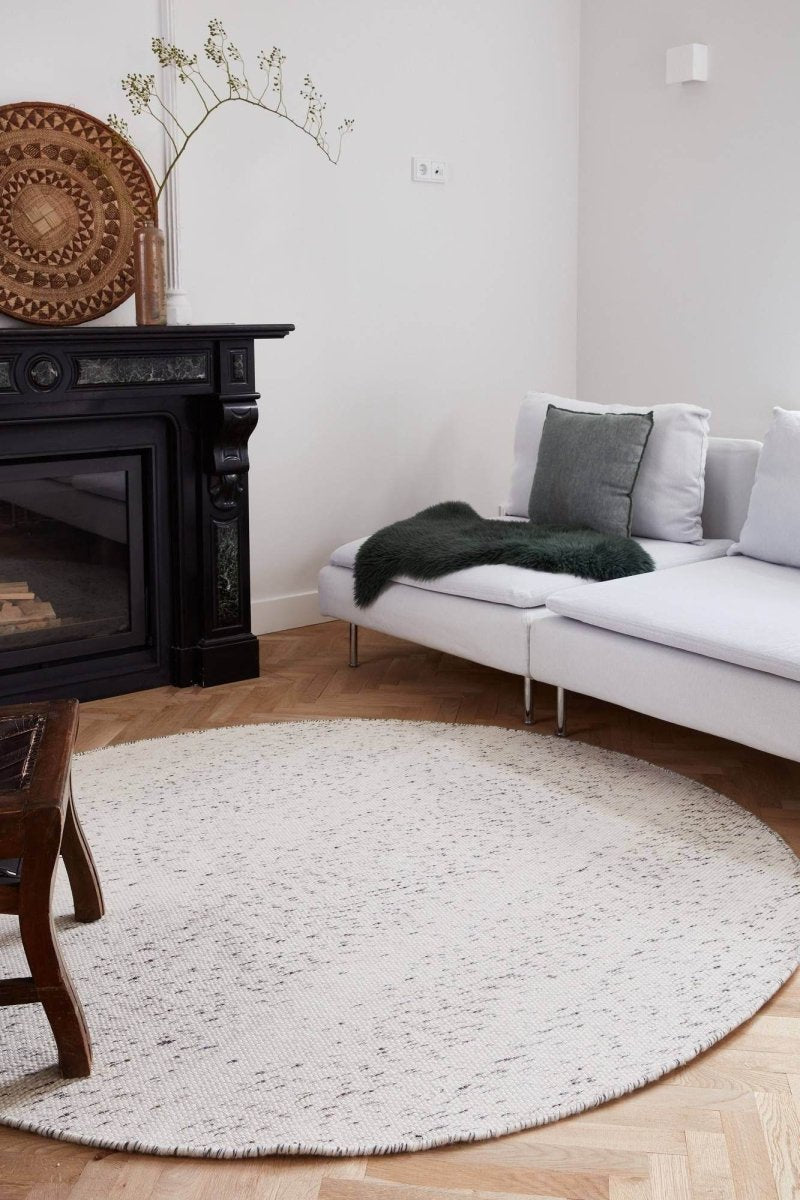 Rond vloerkleed wollen Antraciet/Wit - Cobble Stone
