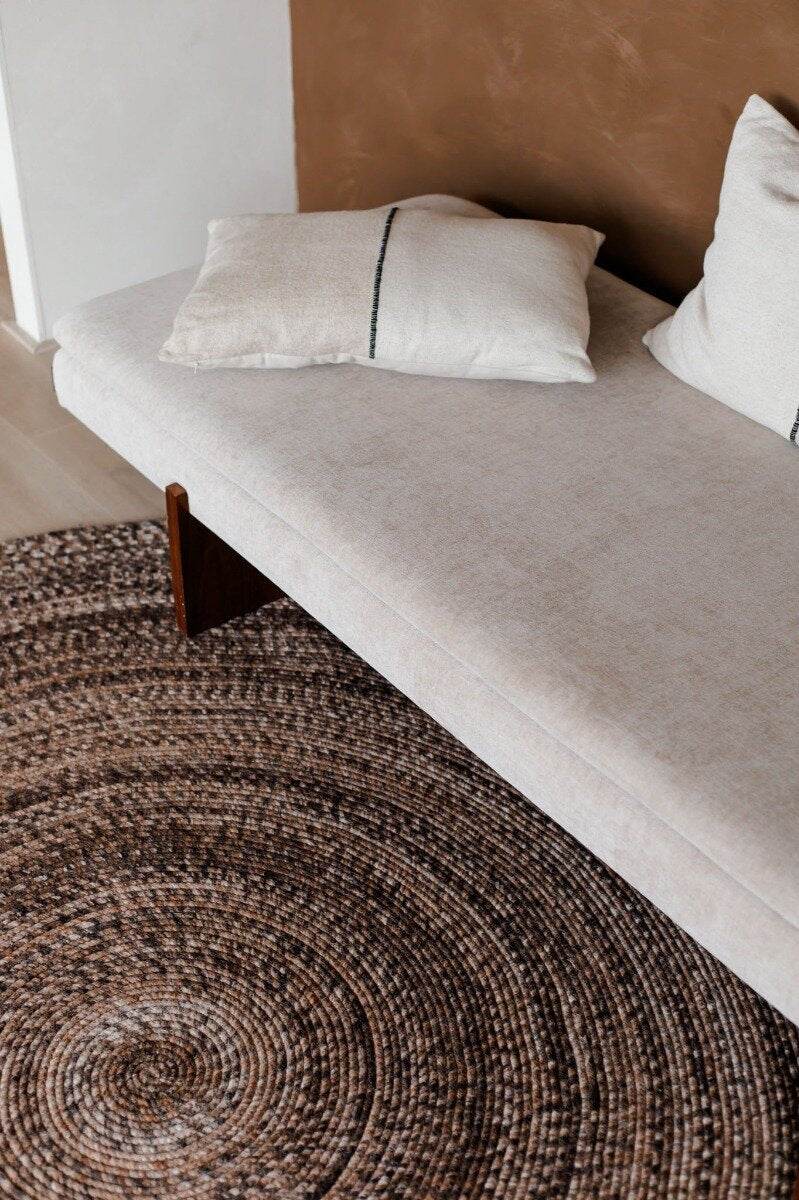 Rond wollen vloerkleed Gapo Donkerbruin gemeleerd