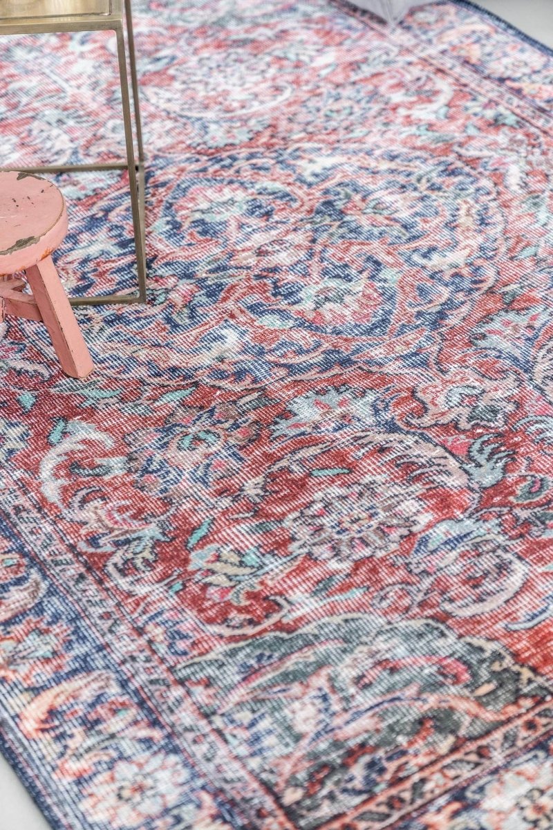 Vintage Vloerkleed Hatice Blauw /Bordeaux Rood