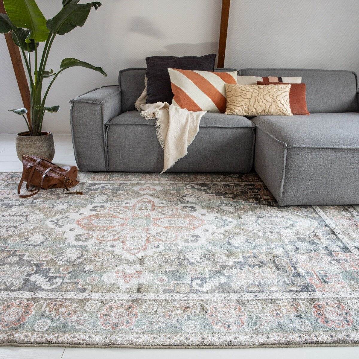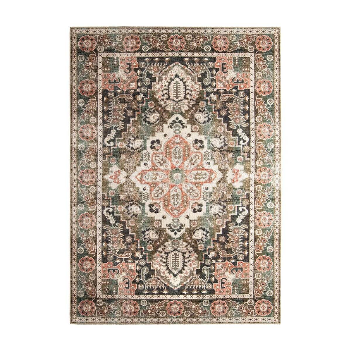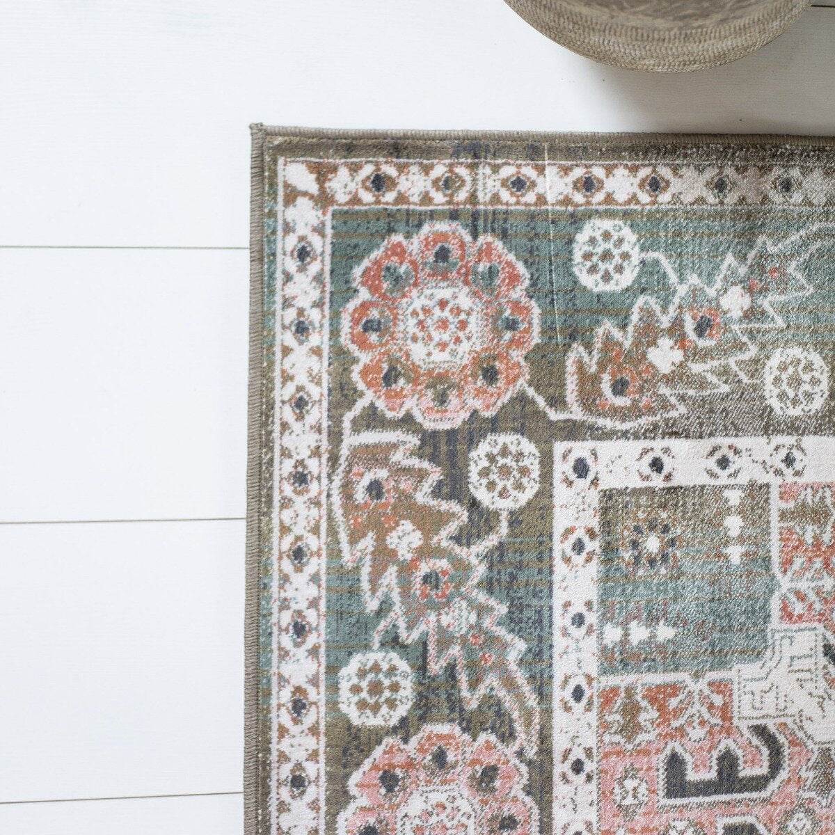 Vintage Vloerkleed Laham Roze/Beige/Groen - Viscose - Tier