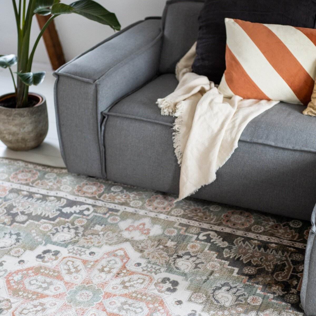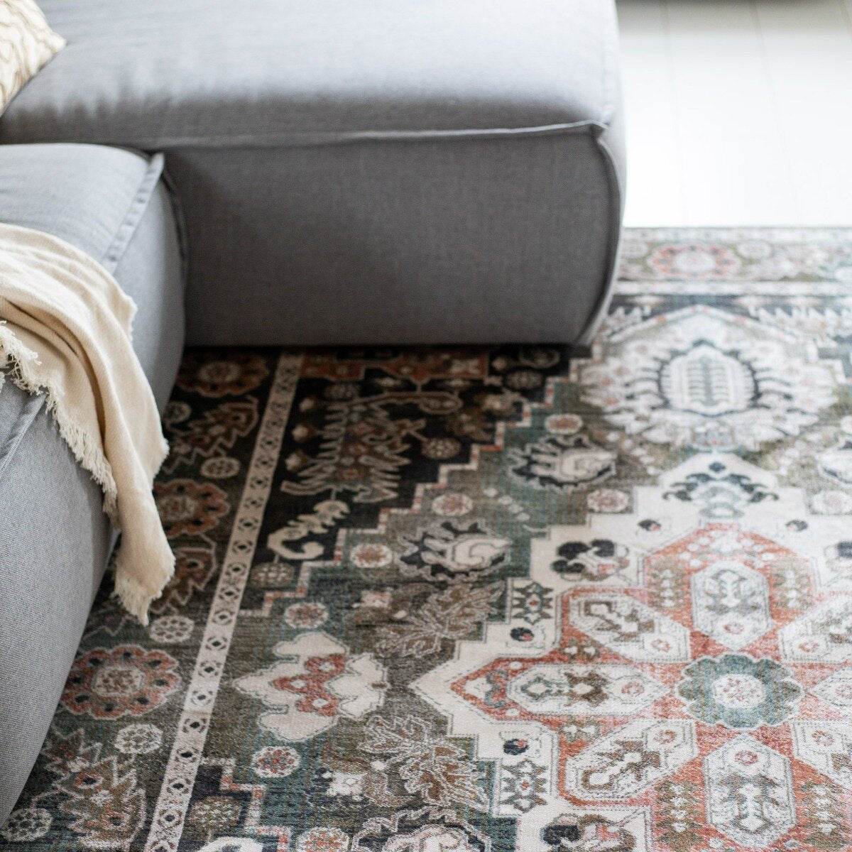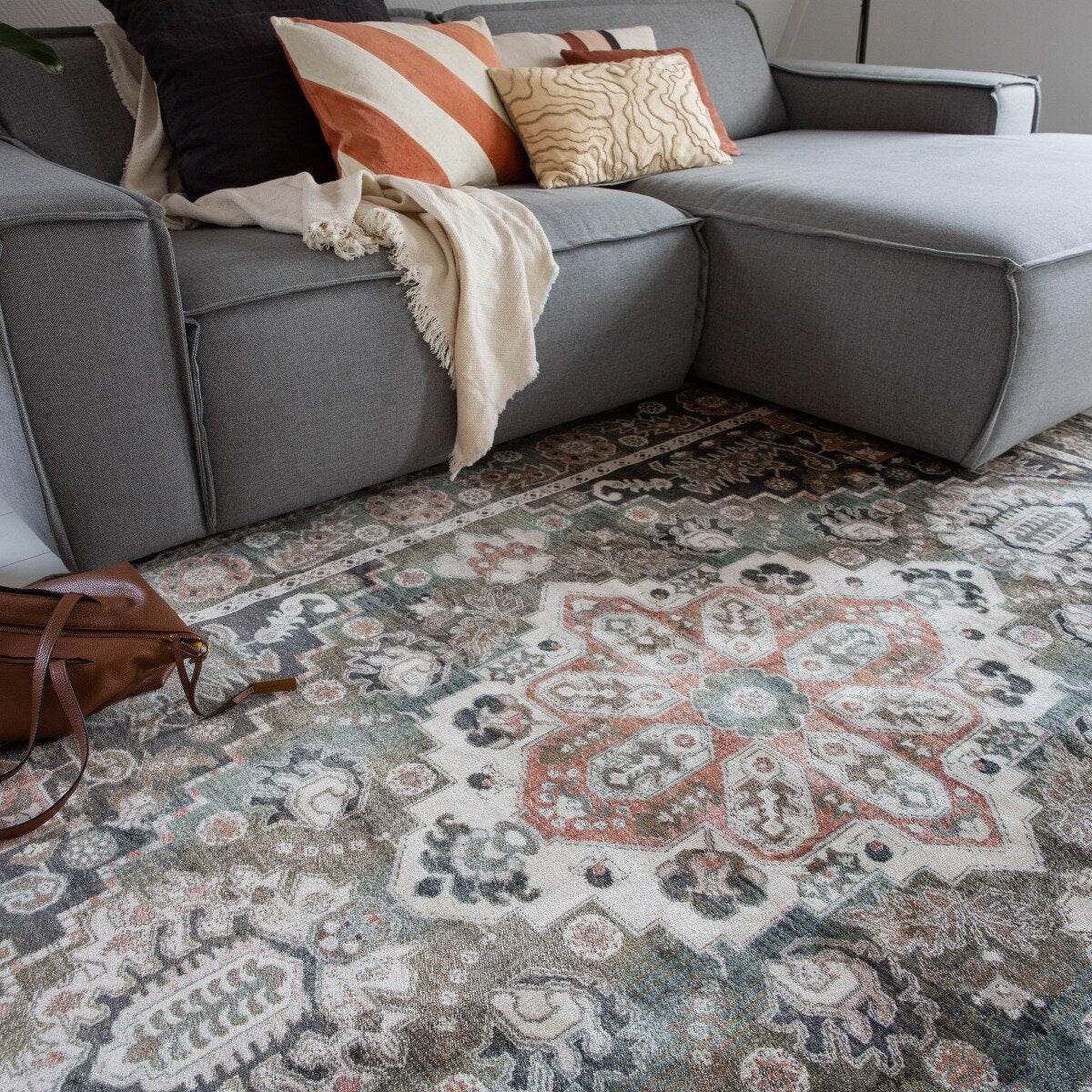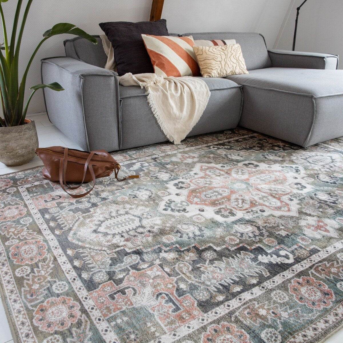 Vintage Vloerkleed Laham Roze/Beige/Groen - Viscose - Tier