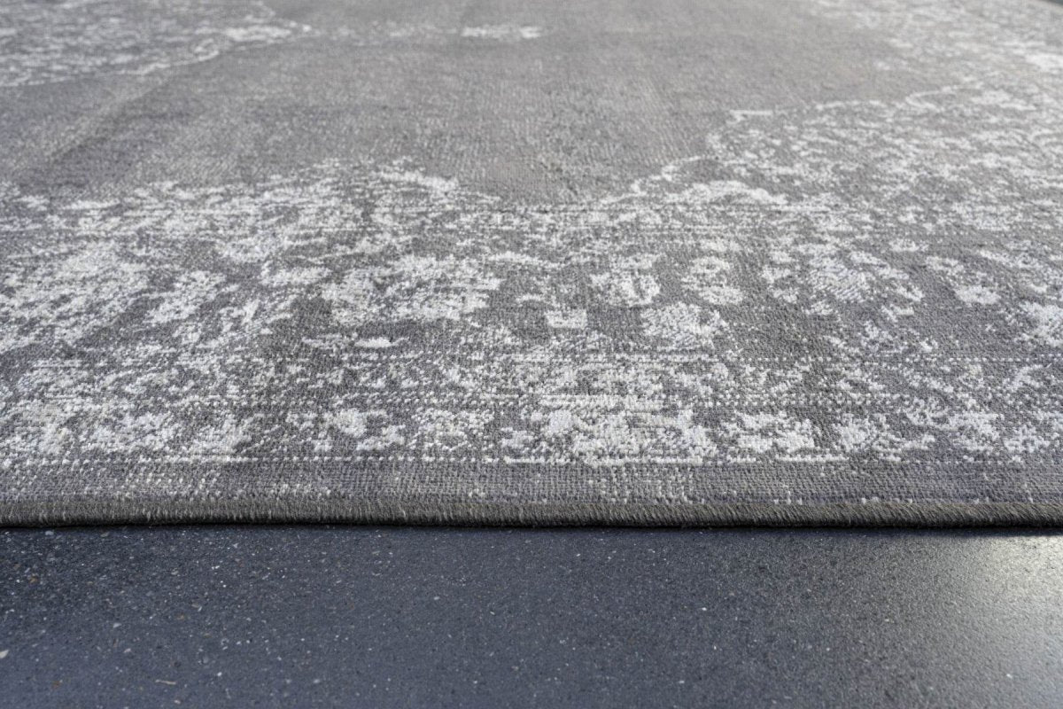 Vintage vloerkleed Ornament antraciet met franjes