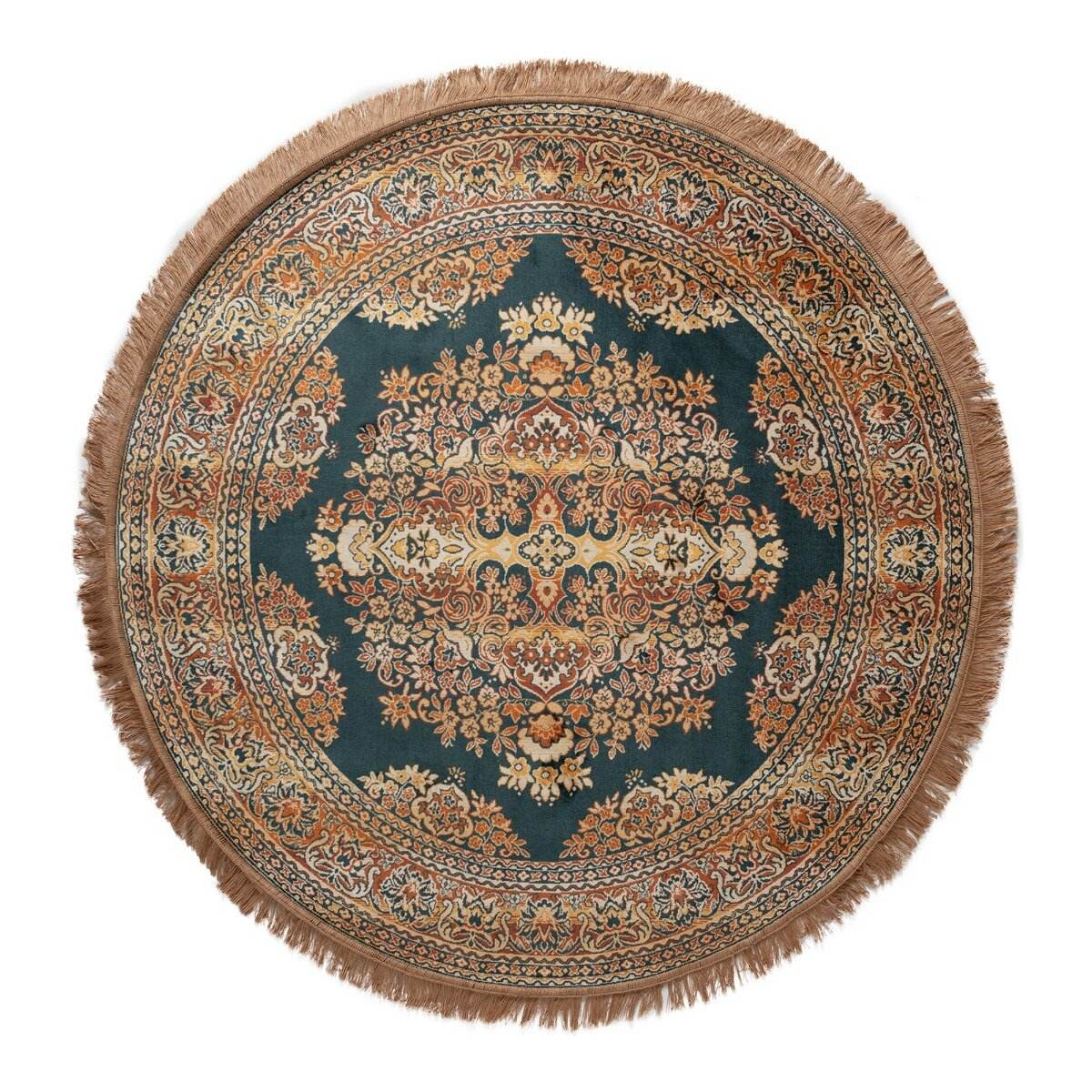 Vintage Vloerkleed Rond Brissac Geel/Oranje/Groen/ met franjes - Tier