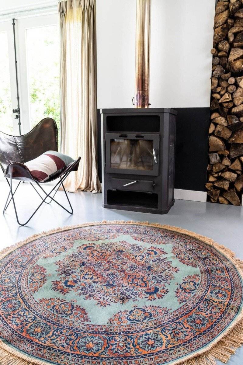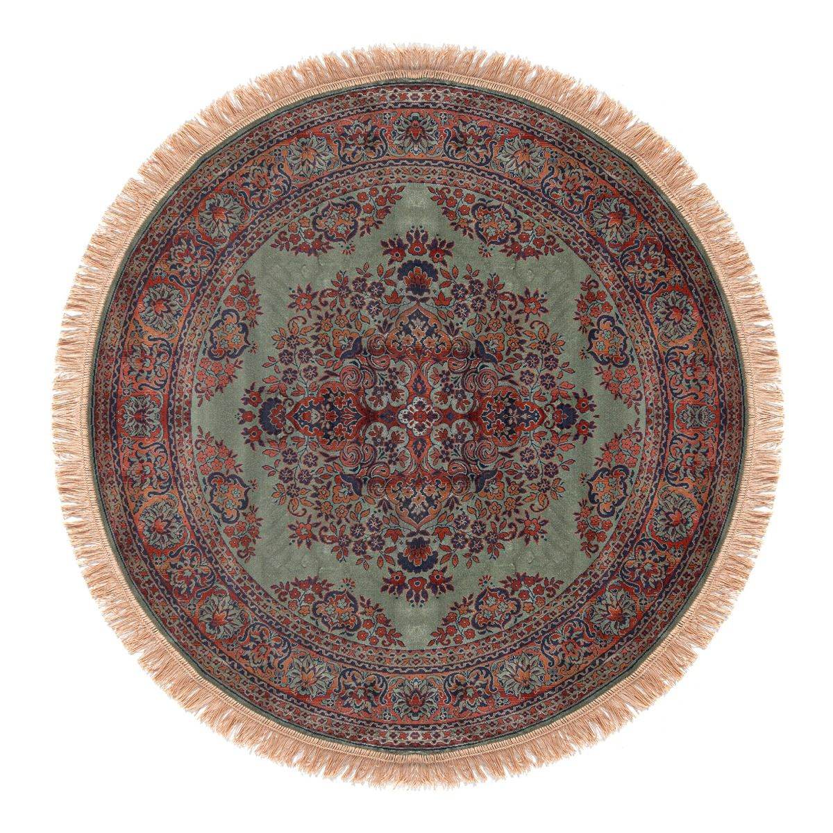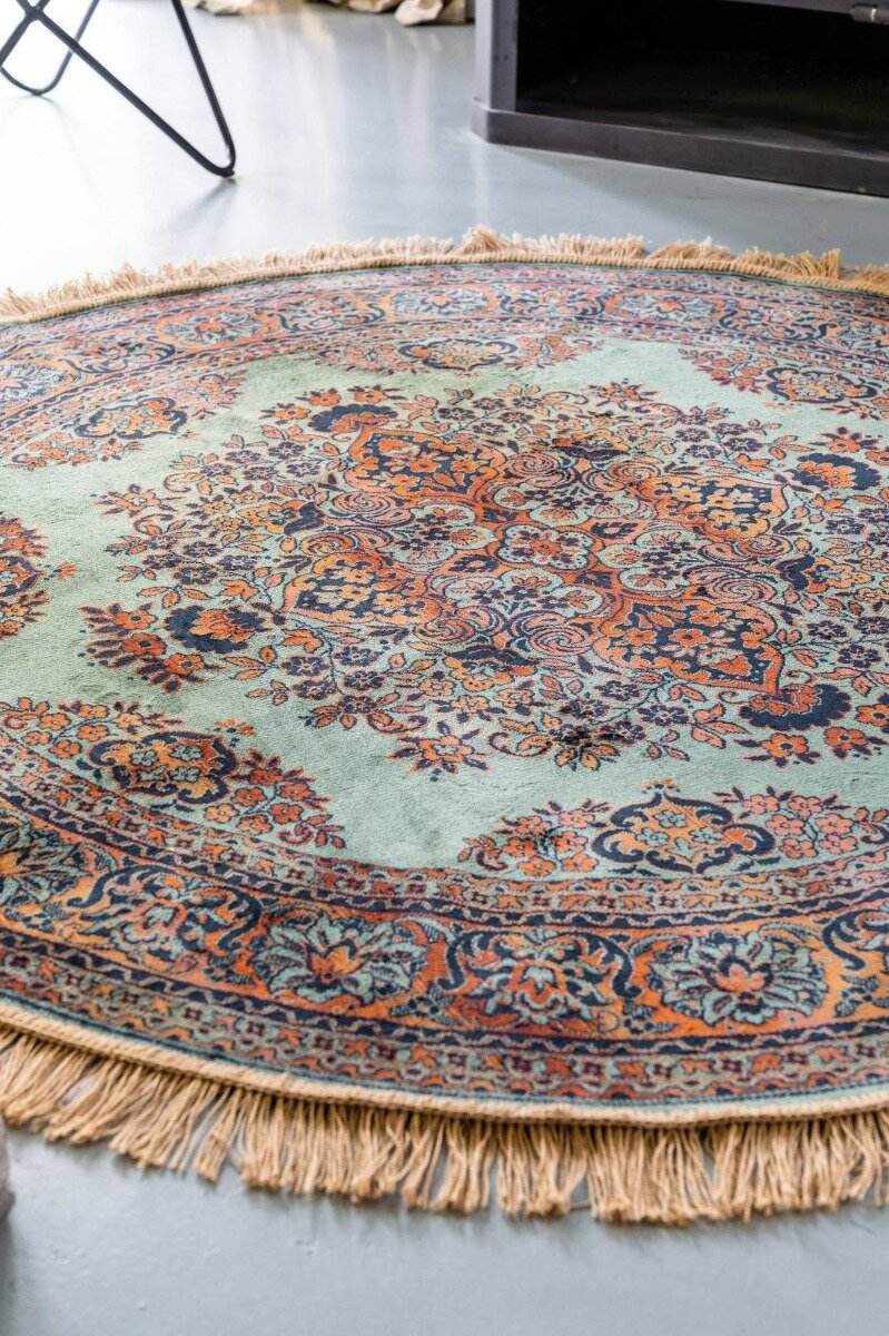 Vintage Vloerkleed Rond Brissac Groen met franjes - Tier