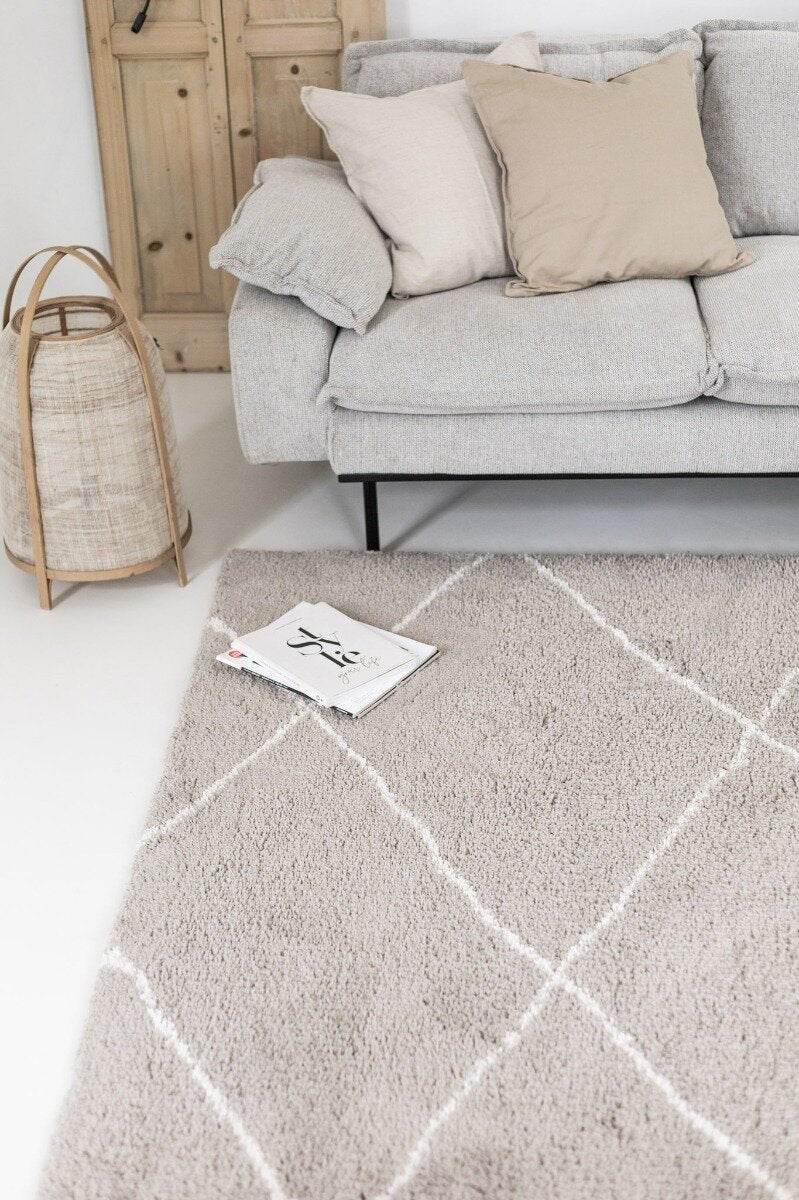 berber vloerkleed hoogpolig grijs/beige/zand/cream - scandinavisch - nea