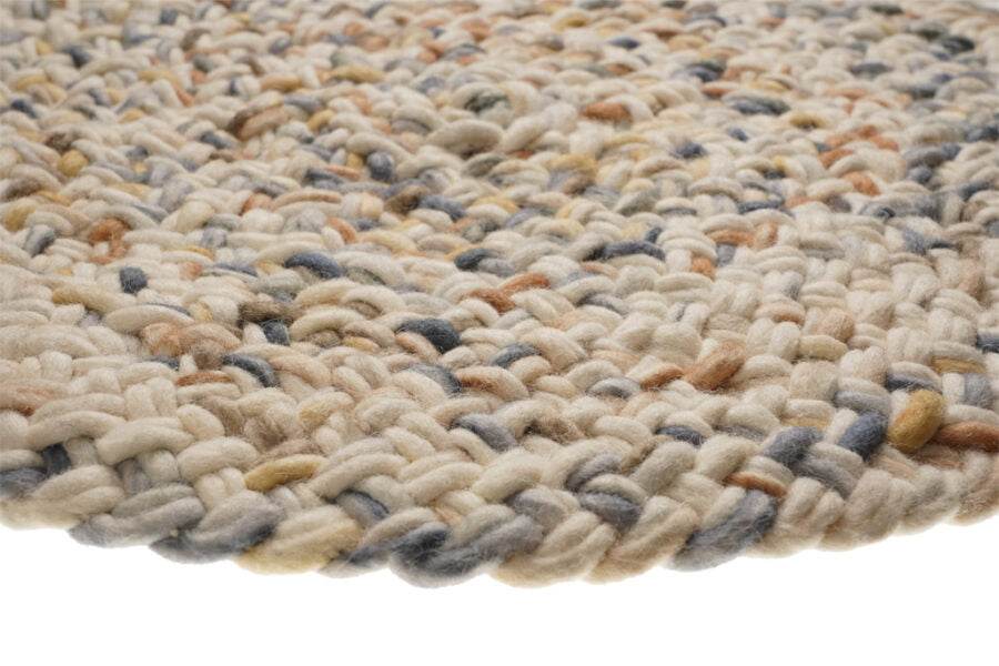 De Intorno is een rond vloerkleed gemaakt van een wol en polyester, deze materialen zijn handgeweven waardoor je vloerkleed niet alleen zacht maar ook sterk is. het vloerkleed bestaat uit 2 of meer kleuren, waaronder een basis kleur en daar meerdere kleuren doorheen gevlochten in het patroon.