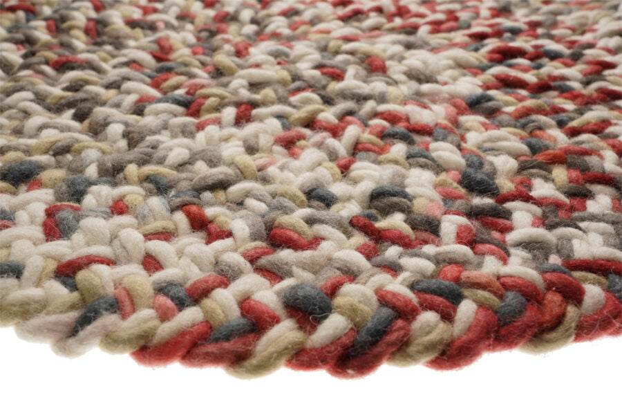De Intorno is een rond vloerkleed gemaakt van een wol en polyester, deze materialen zijn handgeweven waardoor je vloerkleed niet alleen zacht maar ook sterk is. het vloerkleed bestaat uit 2 of meer kleuren, waaronder een basis kleur en daar meerdere kleuren doorheen gevlochten in het patroon.