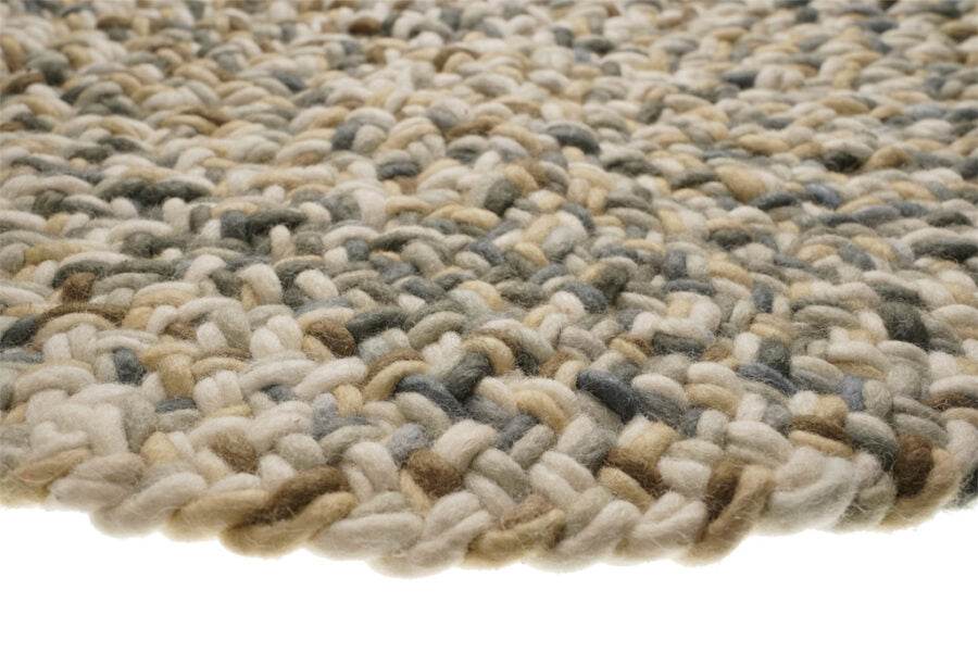 De Intorno is een rond vloerkleed gemaakt van een wol en polyester, deze materialen zijn handgeweven waardoor je vloerkleed niet alleen zacht maar ook sterk is. het vloerkleed bestaat uit 2 of meer kleuren, waaronder een basis kleur en daar meerdere kleuren doorheen gevlochten in het patroon.
